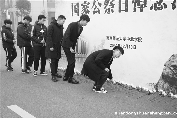 活动最后,全体师生献上手中的白菊,一捧菊花寄哀思,向南京30万大屠杀死难者致以崇高的敬意。